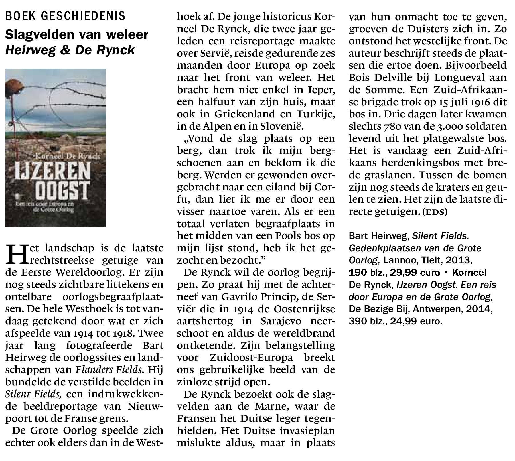 Geplaatst doorKorneel De Rynck8 mei 2014Geplaatst inNieuws Bespreking in Kerk & Leven Op 30 april stond er een bespreking in het katholieke weekblad Kerk & Leven: Gepubliceerd door Korneel De Rynck Schrijver en spreker Bekijk meer berichten